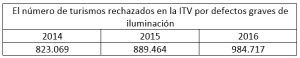 De hecho, no solo es uno de los defectos más detectados, sino que también, en los últimos 3 años, es uno de los problemas que incrementa de manera constante, casi un 20% en tres años. Aquí debajo os dejamos las cifras de los rechazos de vehículos en la ITV, a causa de un alumbrado defectuoso: